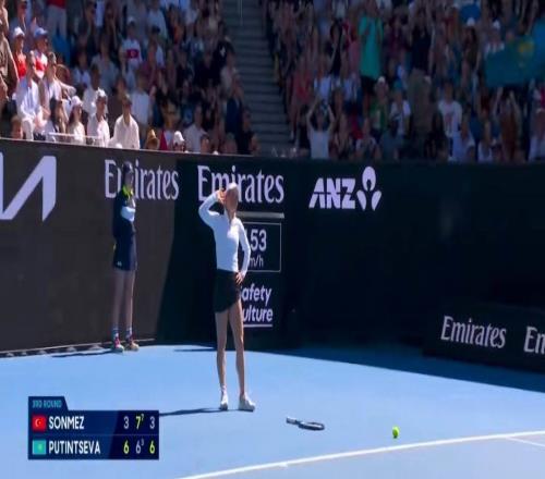 澳网女单第三轮,普丁塞娃在全场土耳其观众的助威声中以6-3 6-7(3) 6-3击败了森梅兹,生涯首进澳网16强,实现四大满贯全16强荣耀。赛后,她做出夸张动作并尽情跳舞回应嘘她的观众。
